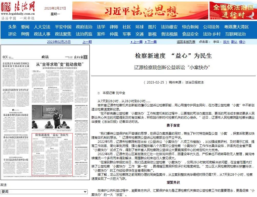法治日报 | 检察新速度 “益心”为民生