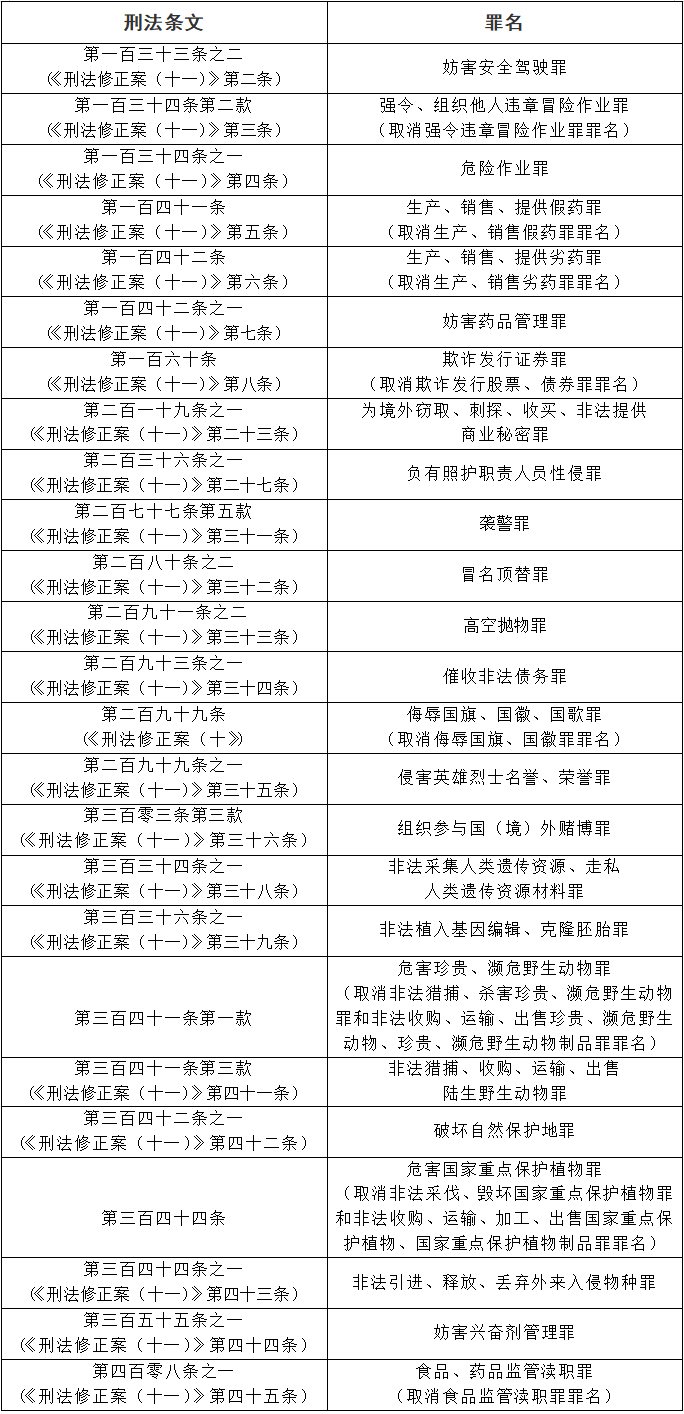 根据《中华人民共和国刑法修正案(十)》(以下简称《刑法修正案(十)》)、《中华人民共和国刑法修正案(十一)》(以下简称《刑法修正案(十一)》),结合司法实践反映的情况,现对《最高人民法院关于执行〈中华人民共和国刑法〉确定罪名的规定》《最高人民检察院关于适用刑法分则规定的犯罪的罪名的意见》作如下补充、修改: