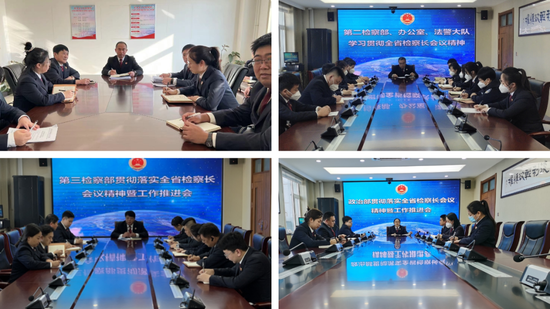 会后,各分管院领导组织本部门干警召开了集体学习讨论会,各部门干警认真学习了全省检察长会议精神,大家一致认为,尹伊君检察长的讲话对检察工作创新发展提出了政治性、指导性、原则性的要求,明确了当前和今后检察工作思路,鼓足了工作干劲。部门讨论会上,各条线负责人结合工作实际,轮流发言,纷纷表示,要着力贯彻落实好全省检察长会议精神,强化学习统一认识,把学习贯彻会议精神与推动东丰检察工作高质量发展紧密结合,突出工作重点,紧盯核心数据,强化工作措施,做到学思用贯通、知信行统一,强化依法能动履职理念,不断提升东丰检察工作质效,更好地把东丰检察工作做实、做优、做精,努力实现争先进位。