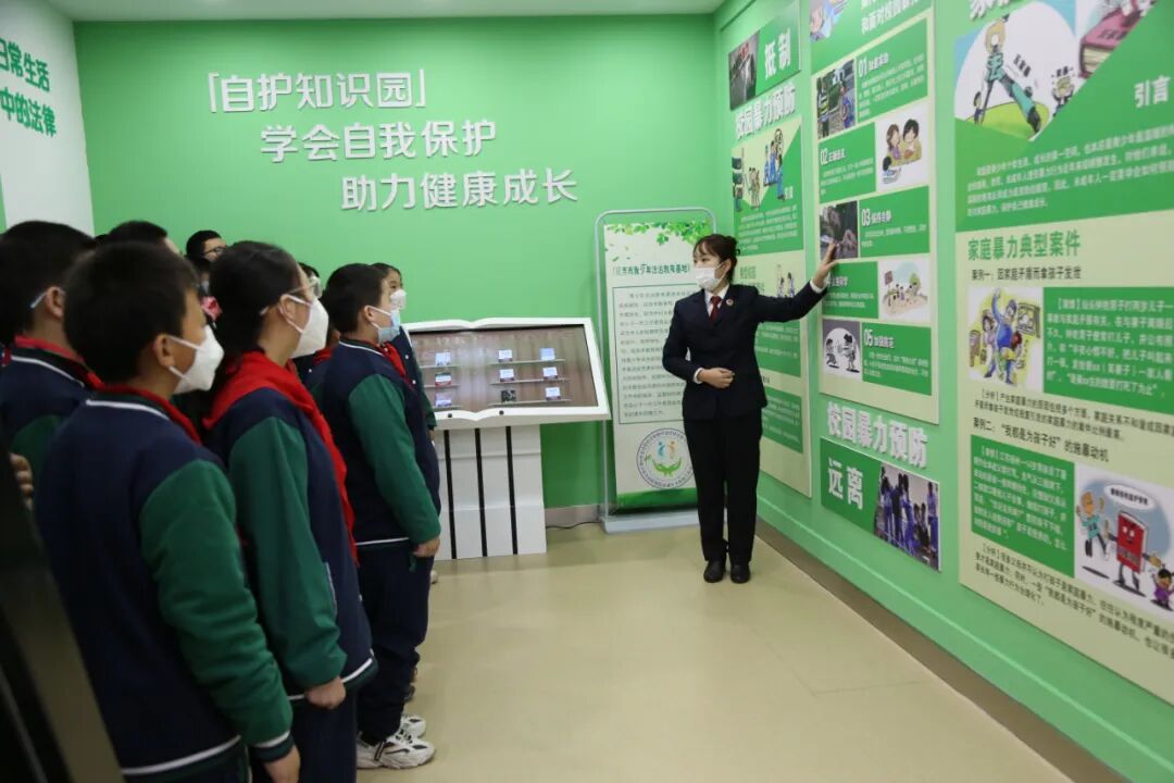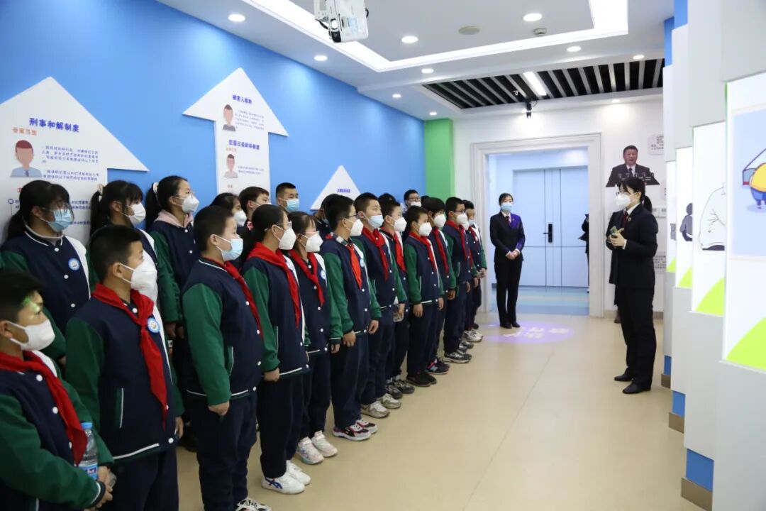 “同学们,谁知道刑事责任年龄是多少岁呀?”活动中,未检检察官结合法治教育展板,采用解说图文、互动问答等方式,为学生详细讲解了什么是犯罪、新型毒品的种类及其危害以及如何远离和面对校园暴力、家庭暴力等法律知识。在未检检察官的引导和讲解下,学生参观了案例警示区域、自护知识园、模拟法庭等工作区域,“零距离”感受到了法律的庄严与神圣,进一步加强了法治观念和自我保护意识。