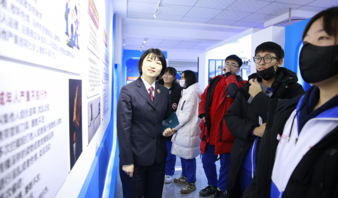 在未成年人法治教育基地,未检检察官向同学们详细地讲解盗窃罪、故意伤害罪、寻衅滋事罪等犯罪类型,以及未成年人触犯了这些法律应该承担怎样的法律责任。