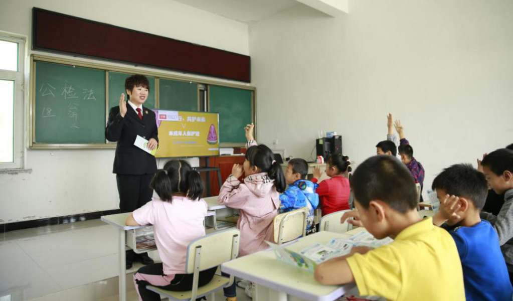 在校园里,身为法治副校长的检察官,为学生们宣讲法律知识,帮助他们提升自我保护意识,在学生们的心中种下法律的种子。